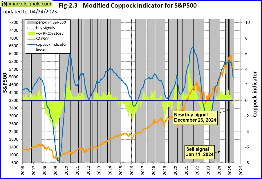The Coppock indicator for the S&P500 invested the the US stock markets mid August 2024. This indicator is described here.