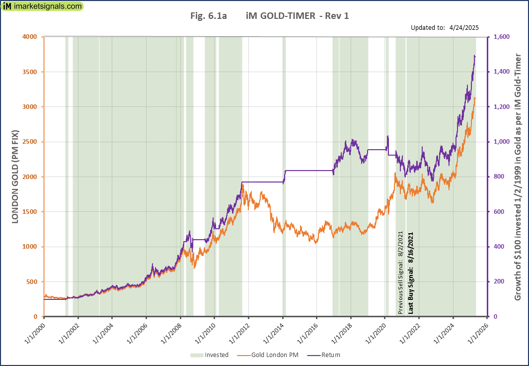 Fig-6.1a-4-25-2025The iM GOLD-TIMER Rev-1   This model generated a new a buy signal mid August 2021 after being in cash for two weeks and thus invested in gold.
