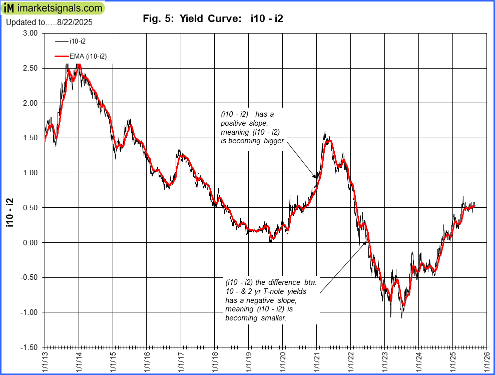 The yield curve model indicates the trend of the 10-year and 2-year Treasuries yield spread. Figure 5 charts (i10 – i2), the yield curve is above last week’s level. This model confirms the direction of the BVR.