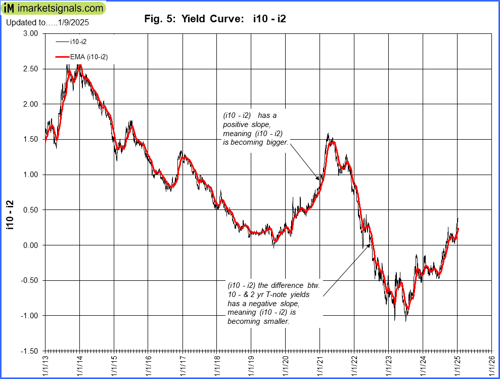 The yield curve model indicates the trend of the 10-year and 2-year Treasuries yield spread. Figure 5 charts (i10 – i2), the yield curve is near last week’s level. This model confirms the direction of the BVR.