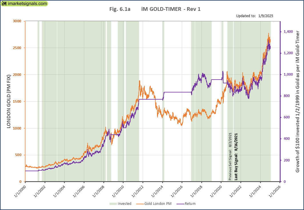 The iM GOLD-TIMER Rev-1 This model generated a new a buy signal mid August 2021 after being in cash for two weeks and thus invested in gold.