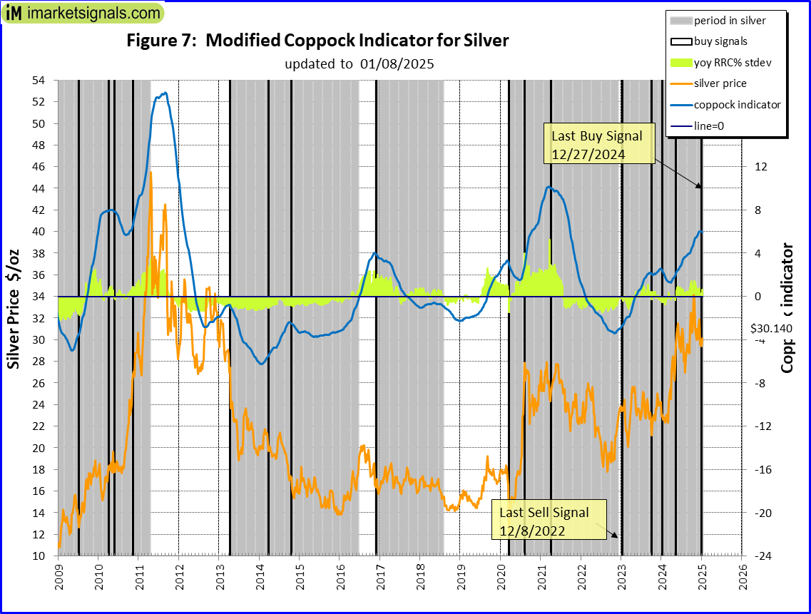 This indicator is described in Silver – Better Than Gold: A Modified Coppock Indicator for Silver.