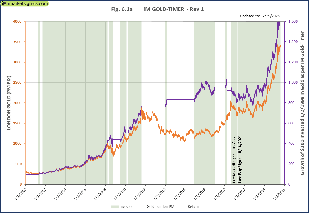 Fig-6.1a-7-25-2025The iM GOLD-TIMER Rev-1   This model generated a new a buy signal mid August 2021 after being in cash for two weeks and thus invested in gold.