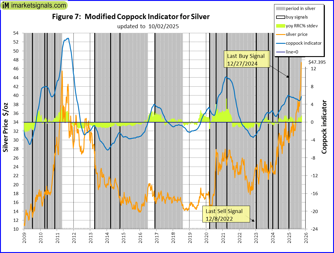 Fig-7.-10-3-2025The modified Coppock Silver indicator shown in Fig 7.  iM-coppock model regenerated a buy signal end mid May 2024 and is invested in Silver.