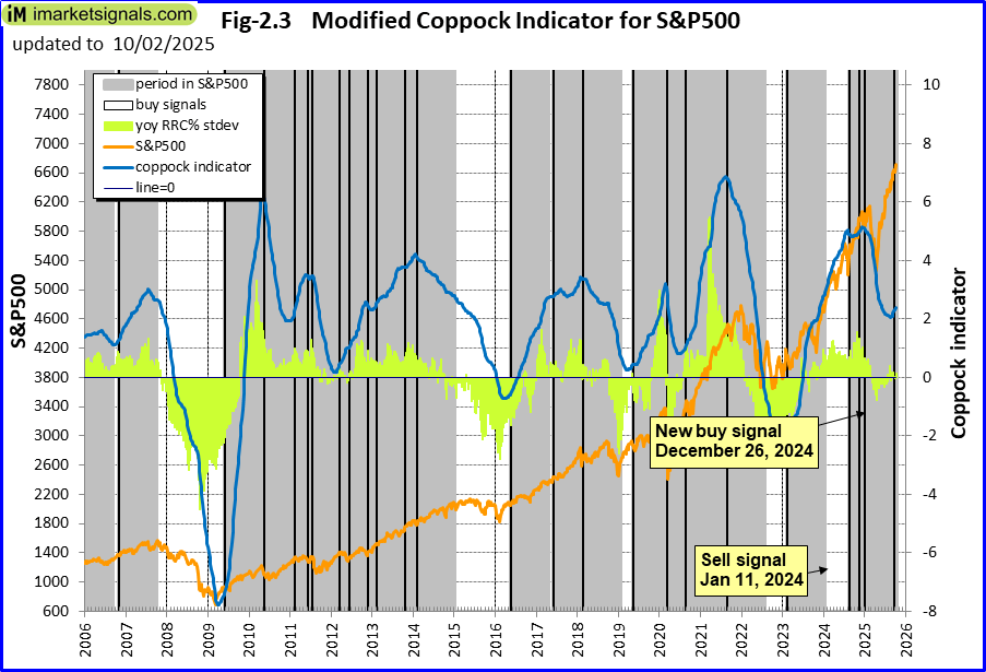 The Coppock indicator for the S&P500 invested the the US stock markets mid August 2024. This indicator is described here.