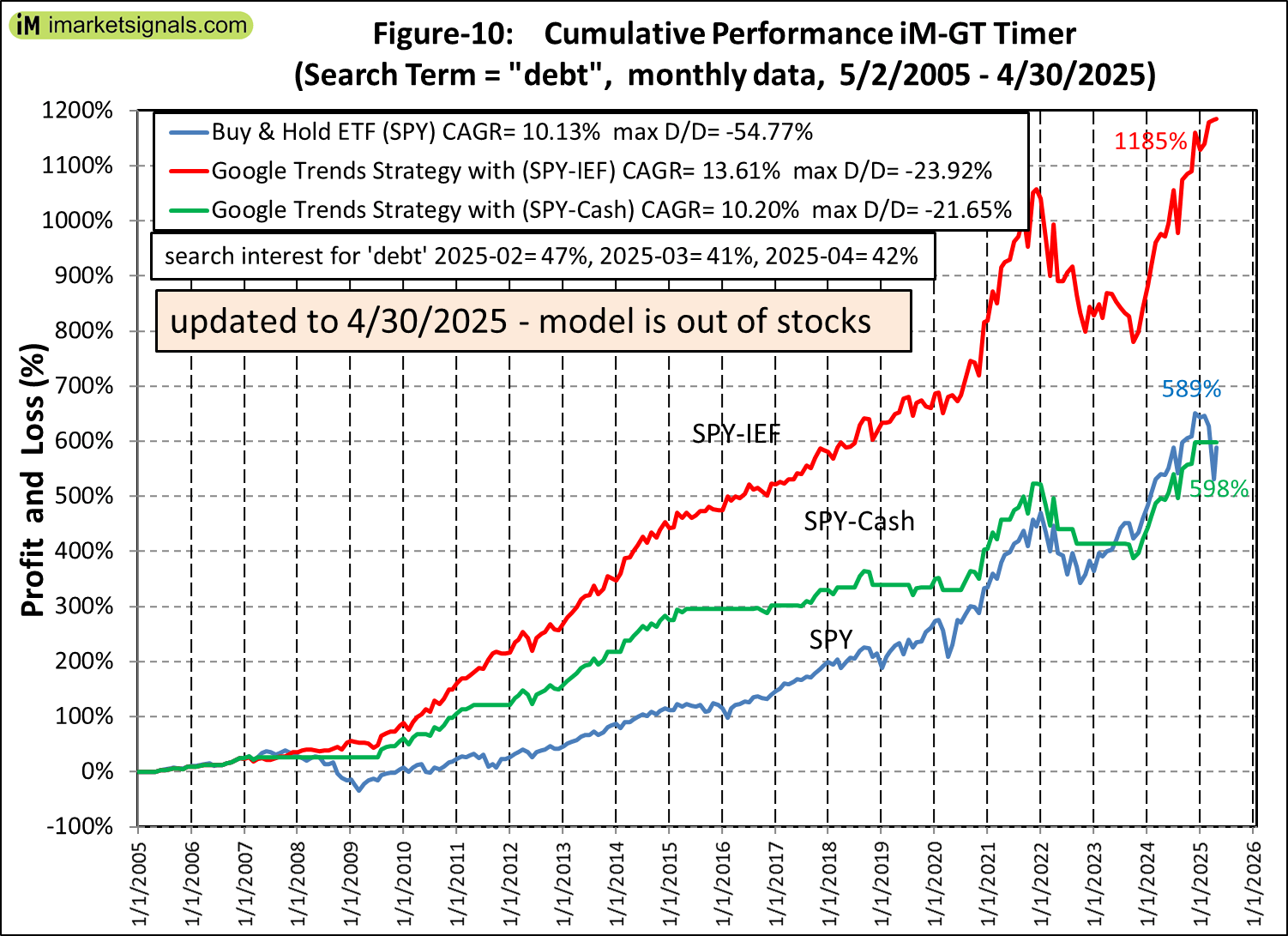 The iM-GT Timer, based on Google Search Trends volume indicator exited the stock markets beginning December 2024. This indicator is described here.