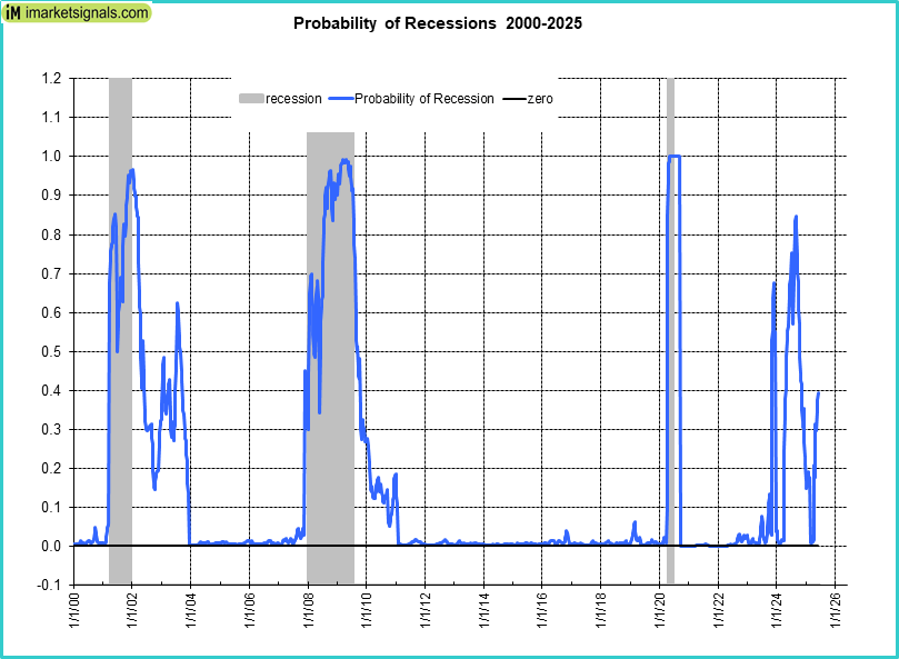 Our UER model does signal a recession. However, the recession probability has risen (see graph).