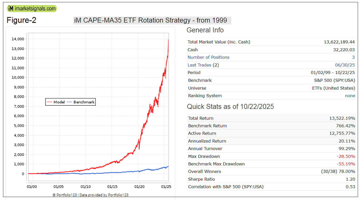 The model will be updated weekly for Silver subscribers. All trades since inception to 9/22/2025 are listed in the Excel file: iM-CAPE-MA35-Transactions.xls freely downloadable to all. The current holdings are GLD, QQQ and XLU equal weighted, since 6/3/2024.