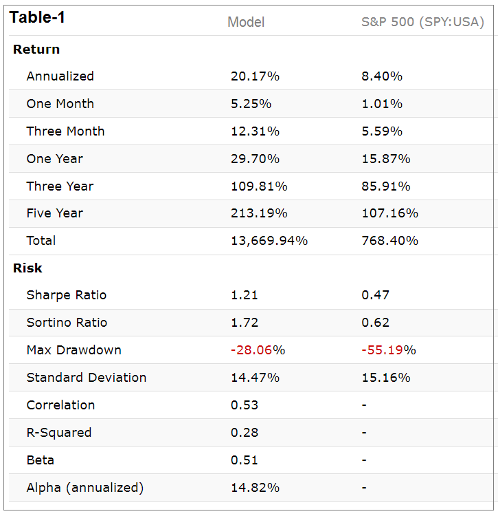 Compared with SPY, the model demonstrates lower volatility and drawdown, approximately 18× higher cumulative return, and consistent long-term performance with low trading activity. (Figure-2 and Table-1)